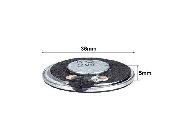 Specyfikacja: Moc znamionowa: 2W, Impedancja: 8 Ohm, Wysokość głośnika: 5mm, Średnica głośnika: 36mm