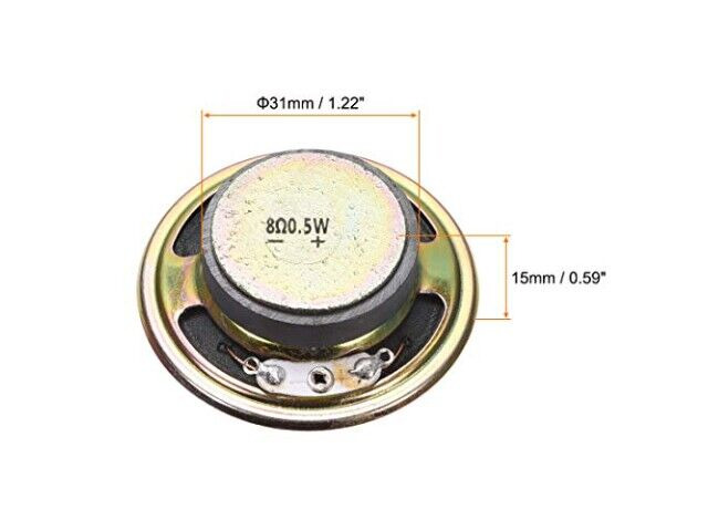 Specifikationer: Impedans: 8 Ohm; Nominell effekt: 0.5W; Högtalarehöjd: 15mm; Magnetdiameter: 31mm; Högtalare ytterdiameter: 50mm