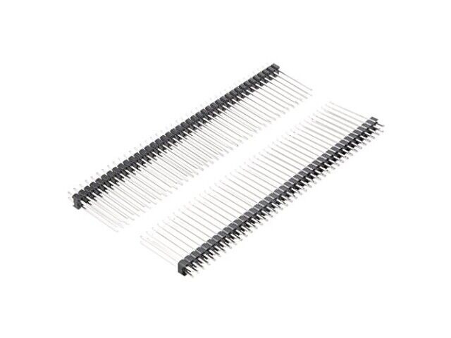 Specifications: 40 pins per row, double row, straight mounting angle, 2.54mm pitch, 25mm pin length, plastic and metal material
