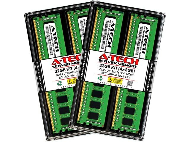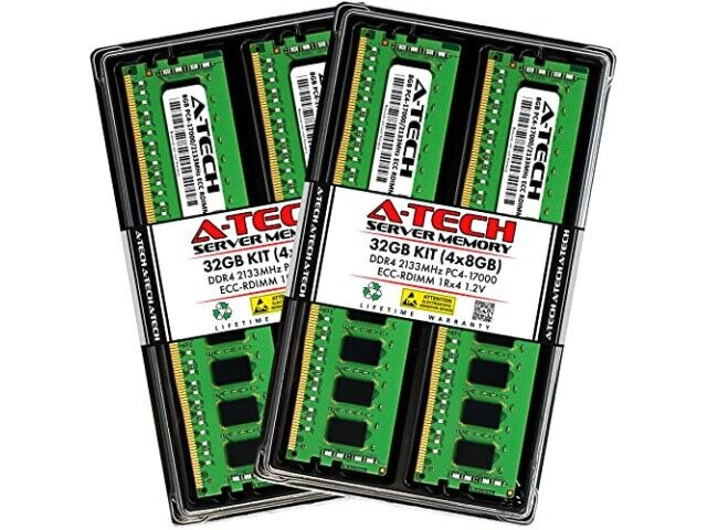 A-Tech 32GB Kit (4x8GB) Minnes-RAM för HP Z440 Workstation - DDR4 2133MHz PC4-17000 ECC Registrerad RDIMM 1Rx4 1.2V - Server
