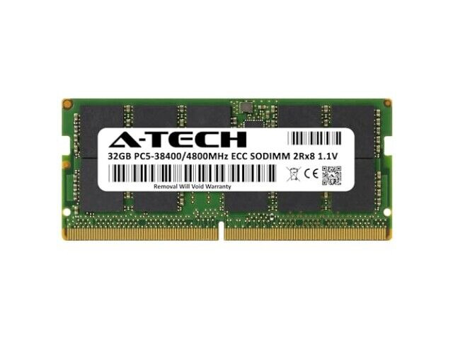 A-Tech erbjuder en 32GB DDR5 ECC SODIMM minnesmodul utformad för mikroservern, arbetsstationer och nätverksplattformar. Denna modul fungerar med 4800MHz och följer JEDEC DDR5 standarden, vilket gör den lämplig för höggärningsdatormiljöer. Den är konstruerad med en dubbelrank konfiguration och har ECC unbuffered teknologi, vilket hjälper till att minska datafel och förbättra systemtillförlitligheten. Modulen är inte kompatibel med standard bärbara datorer eller skrivbordsdatorer, så användare måste se till att deras system stöder DDR5 SODIMM och ECC minne.