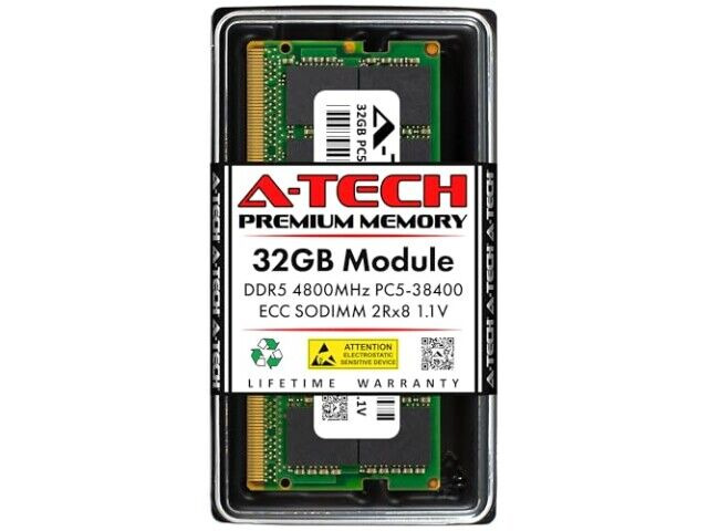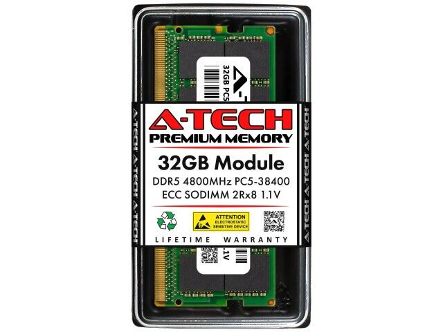 Specifikationer: 32GB DDR5 4800MHz PC5-38400, 262-Pin SO-DIMM, 1.1V, ECC Unbuffered, 2Rx8