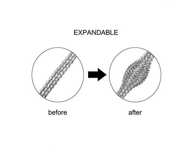 Slangskyddet har en längd av 7 meter och en platt bredd av 13/64 tum, vilket gör att det kan installeras enkelt runt kablar eller slangar av olika storlekar. Den kan expandera upp till en maximal diameter av 9/32 tum, vilket gör den mångsidig för olika användningsområden. Materialet säkerställer att de täckta kablarna eller slangarna är skyddade från externa faktorer som fukt, damm och fysisk skada.