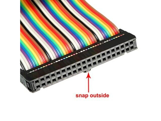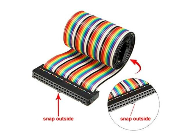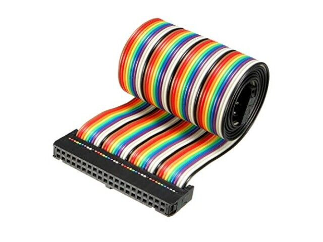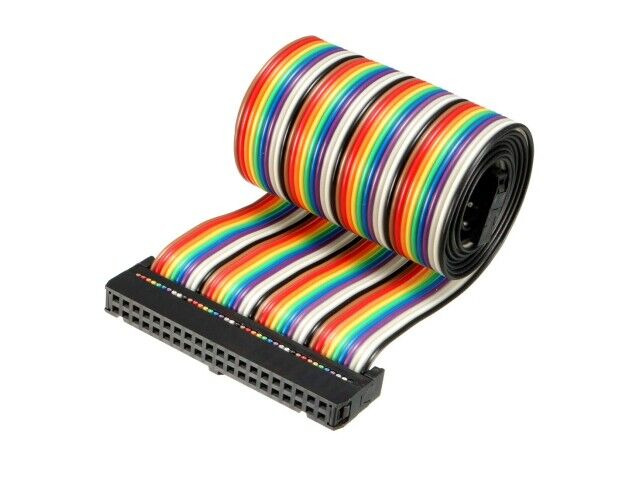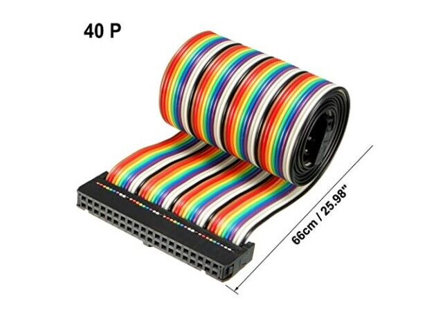 Detta är en platt ribbon kabel med 40 stift, designad för användning i elektroniska enheter som kräver precisa och säkra anslutningar. Den har en steg på 2.54mm, vilket säkerställer kompatibilitet med standard-PCB-anslutningar. Kablen är 66cm lång och har en total bredd på 50,5mm, vilket gör den lämplig för kompakta och rymd-effektiva kretsanslutningar. Den regnbågsfärgade kodningen hjälper till att identifiera enskilda kablar under installation eller felsökning.