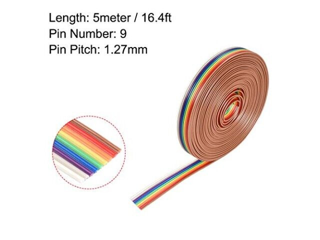 Specifikationer: 9P 1.27mm Pitch 5m Rainbow IDC