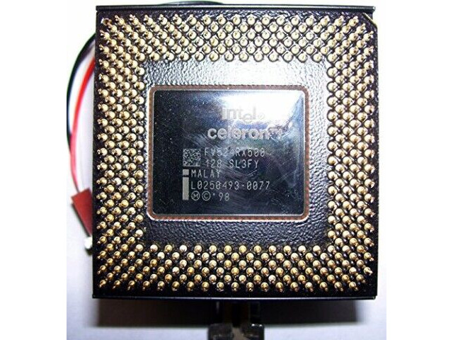 Dit is een Intel Celeron processor met een kloksnelheid van 500 MHz, ontworpen voor gebruik in moederborden met Socket 370. Het is een betaalbare optie uit de Celeron lijn van Intel, bedoeld voor basiscomputertaken en oudere systemen. De Celeron reeks was bekend om lagere prestaties te bieden in vergelijking met de Intel Pentium processors, maar tegen een aanzienlijk lagere prijs, waardoor het geschikt was voor beginnerscomputers en systemen waarbij snelle verwerking niet een prioriteit was. Dit specifieke model werd gebruikt in desktopcomputers tijdens de late jaren '90 en vroege 2000, voor de overgang naar nieuwere sockettypes en geavanceerdere processorarchitecturen.