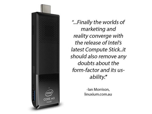 Z procesorem Intel Core m3-6Y30, Compute Stick zapewnia wydajne działanie dla codziennych zadań, takich jak przeglądanie stron internetowych, edycja dokumentów i odtwarzanie mediów. Wbudowane grafiki Intel HD zapewniają płynne odtwarzanie wideo i lekkie przetwarzanie multimedialne. Urządzenie jest wyposażone w 4 GB pamięci DDR3 pracującej z prędkością 1866 MHz w konfiguracji dual-channel, zapewniającej wystarczające możliwości wielozadaniowości dla większości użytkowników. Dodatkowo ma 64 GB pamięci masowej eMMC, która oferuje szybkie czasu uruchamiania i niezawodny dostęp do danych.