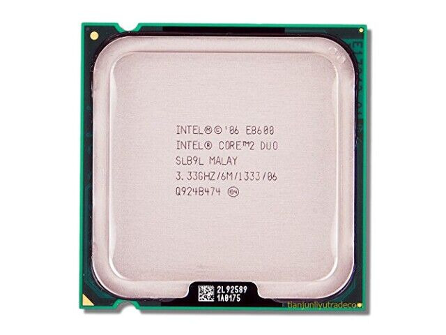 De Intel Core 2 Duo E8600 is een desktopprocessor die is ontworpen voor prestatiegerichte rekenopdrachten. Het werd uitgebracht tijdens de middellage jaren 2000 en was onderdeel van de Core 2 Duo reeks, die een aanzienlijke verbetering in prestaties en efficiëntie betekende ten opzichte van vorige generaties. Deze processor werkt op een klokfrequentie van 3.33GHz, waardoor het geschikt is voor multitasken, gamen en andere intensieve toepassingen. Het heeft een front-side bus (FSB) snelheid van 1333MHz, wat efficiënte communicatie tussen de CPU en andere componenten van het computersysteem mogelijk maakt. Met 6MB L2-cache biedt het snellere toegang tot vaak gebruikte gegevens, waardoor de algemene systeemprestatie verbetert. De processor gebruikt de Socket T (LGA-775) interface, die toen veel gebruikt werd in desktopmoederborden.