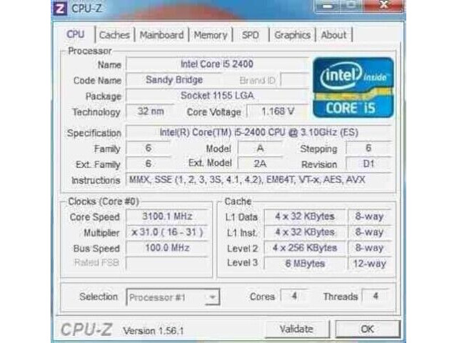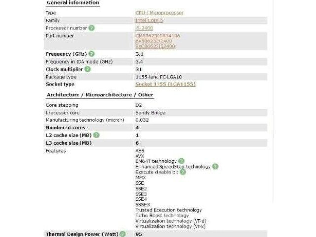 Specificaties: basisklokfrequentie 3,1 GHz, QPI 5,0 GT/s, L3-cache 6 MB, socket LGA 1155