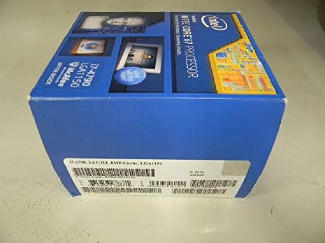 Specificaties: BX80646I74790, Haswell core, 4 cores, 8 threads, 3,6 GHz basisfrequentie, 4,0 GHz max turbo frequentie, 8 MB Intel Smart Cache, 22 nm lithografie, LGA 1150 socket, 84 W TDP, 25,6 GB/s geheugenbandbreedte, Intel HD Graphics 4600 (350 MHz basisfrequentie, 1,2 GHz max dynamische frequentie)