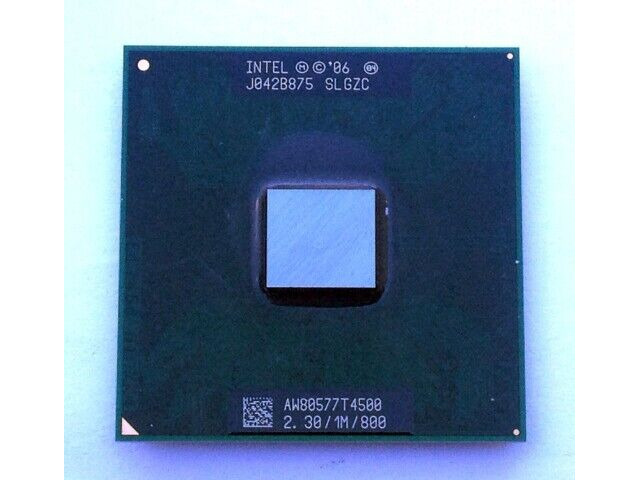 To jest nowy OEM Intel Core T4500 SLGZC Socket P Mobile CPU Processor pracujący z prędkością zegara 2,3 GHz. Ma 1 MB pamięci cache L2 i prędkość magistrali frontowej 800 MHz. Jest zaprojektowany do obliczeń mobilnych i idealny do laptopów oraz innych urządzeń przenośnych wymagających wydajnej pracy i zarządzania energią. Jest częścią rodziny Intel Core 2 Duo znanej z równowagi między wydajnością a energooszczędnością. Projekt Socket P zapewnia kompatybilność z szerokim zakresem mobilnych płytek głównych i laptopów z końca lat 2000 do początku lat 2010.