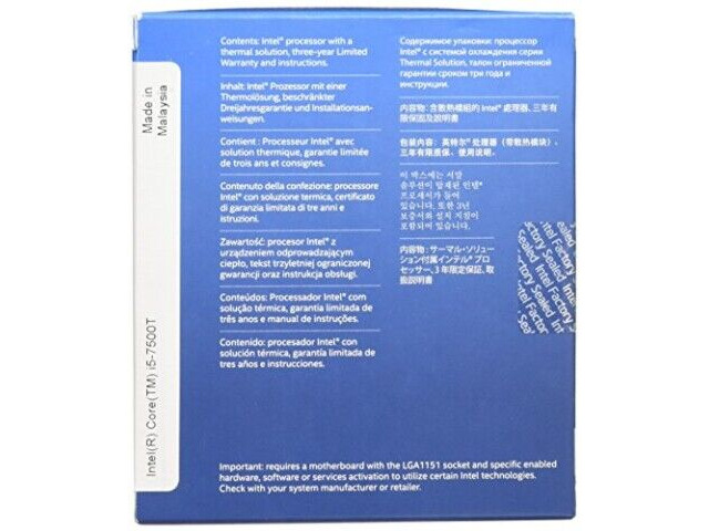 Specificaties: 7e generatie Core i5-7500T, Quad Core, 6MB Cache, 2,70GHz basis-klokfrequentie, 3,30GHz Turbo-klokfrequentie, FC-LGA14C