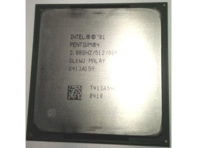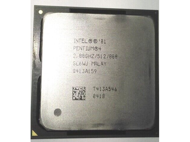 Dit is een Intel Pentium 4 processor met een kloksnelheid van 2,8 GHz en een front-side bus (FSB) van 800 MHz. Het is onderdeel van de Northwood core familie, die een van de vroege pogingen van Intel was om prestaties te verhogen via hogere kloksnelheden en verbeterde productietechnieken. De processor gebruikt een 0,13-micron productietechnologie, wat betere energie-efficiëntie en betere warmtebeheersing mogelijk maakte vergeleken met vorige generaties. Het heeft een enkel kernel met 512 KB L2 cache en ondersteunt Hyper-Threading technologie, wat de processor in staat stelt meerdere threads tegelijkertijd te verwerken, waardoor multitaskprestaties verbeteren.