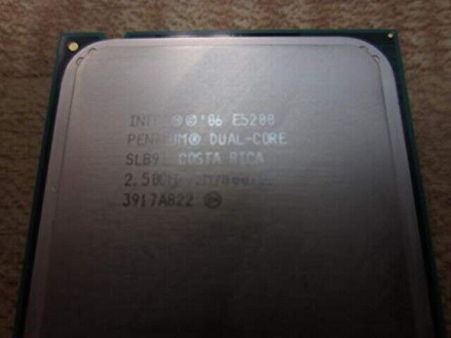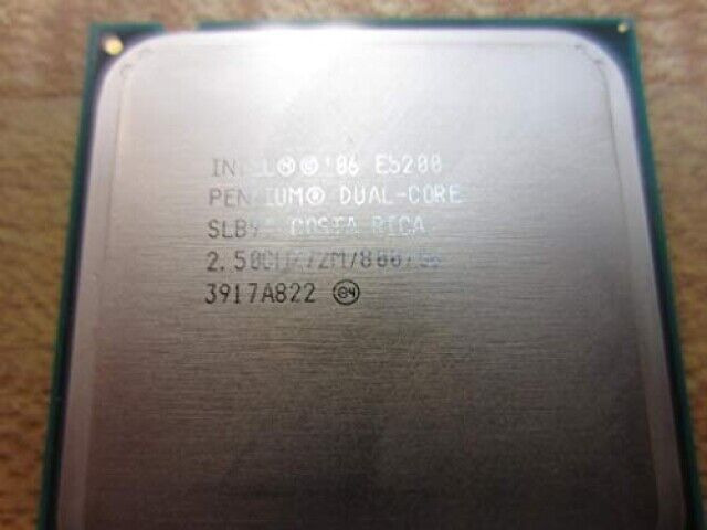 To jest procesor Intel Pentium Dual-Core, model E5200, z częstotliwością zegara 2,50 GHz. Ma 2 MB pamięci cache L2 i prędkość magistrali front-endowej 800 MHz. Procesor jest zaprojektowany do podstawowych zadań obliczeniowych i jest odpowiedni do użytku w starszych systemach desktopowych. Jest częścią serii Intel Pentium, znanej z dostarczania niezawodnych wydajności w codziennych aplikacjach, takich jak przeglądanie stron internetowych, produktywność biurowa i odtwarzanie mediów.