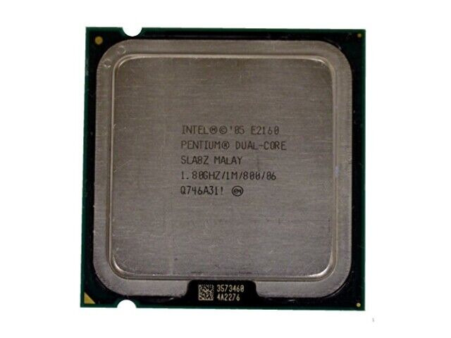 Dit is een Intel Pentium Dual-Core processor, model E2160, die werkt op een kloksnelheid van 1,80 GHz. Het heeft een cache van 1 MB en een front-side bus snelheid van 800 MHz, ontworpen voor de LGA775 socket. Deze processor is in 2006 uitgegeven en maakt deel uit van de Pentium D serie van Intel, die gericht was op budgetvriendelijke desktopcomputing. Het is geschikt voor basiscomputertaken zoals webbladeren, kantoorapplicaties en lichte multimedia-gebruik. De processor is bekend om zijn dual-core architectuur, wat betere multitaskingprestaties oplevert vergeleken met single-core processors van dezelfde tijd.