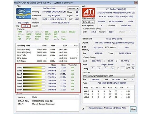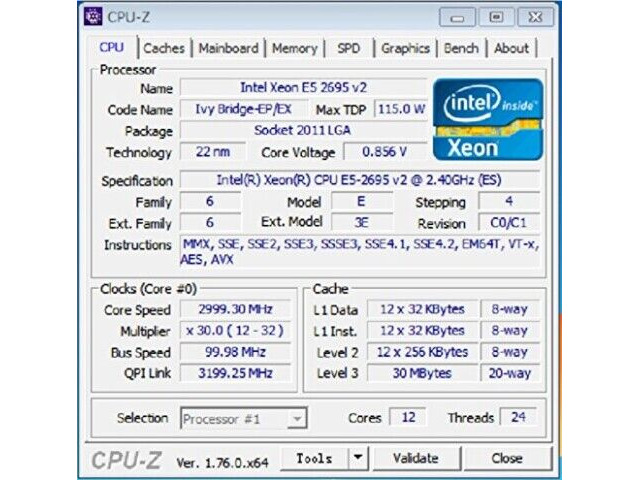 Specyfikacje: 12 rdzeni, podstawowa częstotliwość zegara 2,4 GHz, maksymalna częstotliwość turbo 3,2 GHz, pamięć podręczna 30 MB, gniazdo LGA 2011, prędkość magistrali 8,0 GT/s