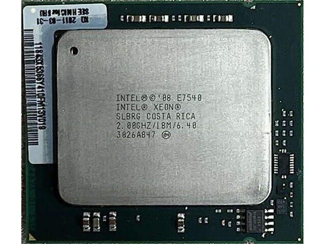 Specyfikacje: częstotliwość zegara 2 GHz, procesor 6-jądrowy, 18 MB cache, gniazdo LGA-1567, prędkość magistrali 6,40 GT/s