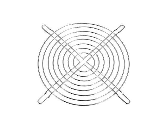 Specyfikacja: całkowite wymiary 230mm x 230mm, kompatybilność z rozmiarem wentylatora 180mm x 180mm, konstrukcja metalowa z niklowym wykończeniem, 4 otwory montażowe