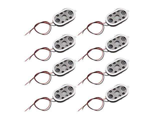 Förpackningen innehåller åtta stycken av dessa högtalare, vilket gör att användare kan ha flera ersättningar eller experimentera med olika konfigurationer. Den lilla höjden på 3mm säkerställer att den kan passa i tunna höljen eller enheter med begränsat utrymme. Materialkvaliteten och konstruktionen är lämpliga för vanligt bruk i icke-professionella ljudapplikationer, även om den kanske inte klarar av hög volym eller kontinuerlig användning effektivt.