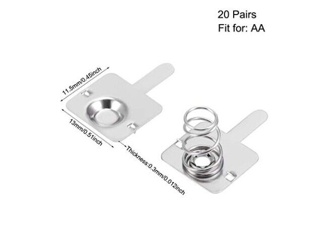 Varje förpackning innehåller 20 par av dessa fjäderkontakter, vilket gör det idealiskt för användare som behöver flera ersättningar. Produkten är utformad för ett enskilt AA-batterifack, så användare bör se till att de har rätt antal plattor för deras specifika tillämpning. Den silverfärgade finishen ger plattorna ett rent utseende samtidigt som den indikerar deras metalliska sammansättning.