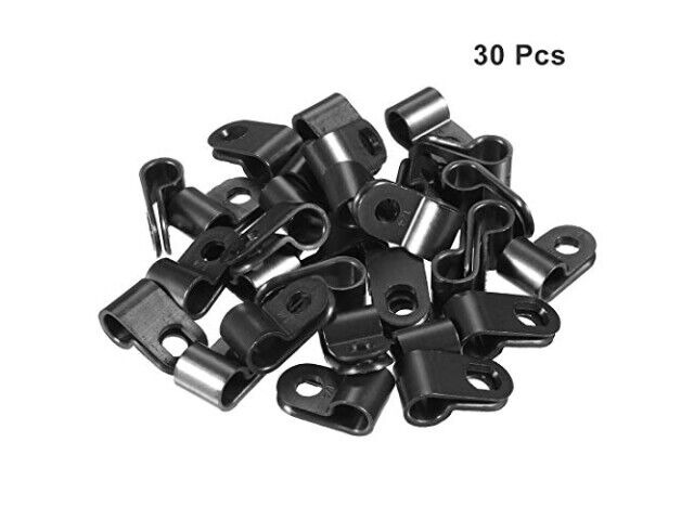 Każdy klips jest częścią zestawu 30 sztuk, co ułatwia instalacje zbiorcze lub wiele projektów. Czarny kolor zapewnia elegancki i profesjonalny wygląd, który dobrze komponuje się z większością środowisk. Design typu R jest zarówno funkcjonalny jak i stylowy, oferując elastyczność w sposobie montażu lub układania. Te klipsy są wielokrotnego użytku, co zwiększa ich wartość z czasem.