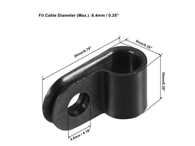 Klipsy są łatwe w instalacji i użyciu, wymagają jedynie śruby do zabezpieczenia kabla. Ten design zapewnia pewne trzymanie kabli o maksymalnym średnicy 6,4 mm, co czyni je wszechstronnymi dla różnych typów kabli. Otwór montażowy ma średnicę 4,6 mm, co umożliwia bezpieczne przymocowanie do powierzchni. Ich kompaktowe wymiary 20 x 10 x 9 mm sprawiają, że są dyskretne, jednocześnie zapewniając niezawodne wsparcie.