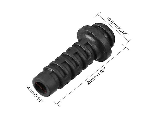 Średnica wewnętrzna 4 mm zapewnia bezpieczne dopasowanie wokół większości standardowych kabli, zapobiegając ich wysuwaniu się lub uszkodzeniom podczas użytkowania. Wymiary 26 x 10,6 mm sprawiają, że te ochraniacze są kompaktowe i łatwe do instalacji bez dodawania zbędnej masy. Projekt zapewnia, że można je łatwo przesunąć na kabel i zabezpieczyć na miejscu bez konieczności używania skomplikowanych narzędzi lub regulacji.