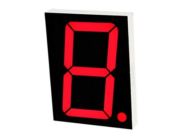 Specyfikacje: 1 Bit 7 Segment Display, Common Anode, Red Emitted Color, 3" Number Height, 10 Pin, 20mA Continuous Forward Current, 2V Average Forward Voltage