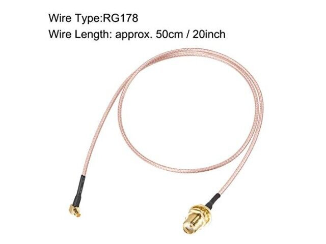 Specifikationer: Wire Type: RG178; Wire Length: approx. 50cm / 20inch; Connector Type: MMCX Male Right Angle to SMA Female Bulkhead