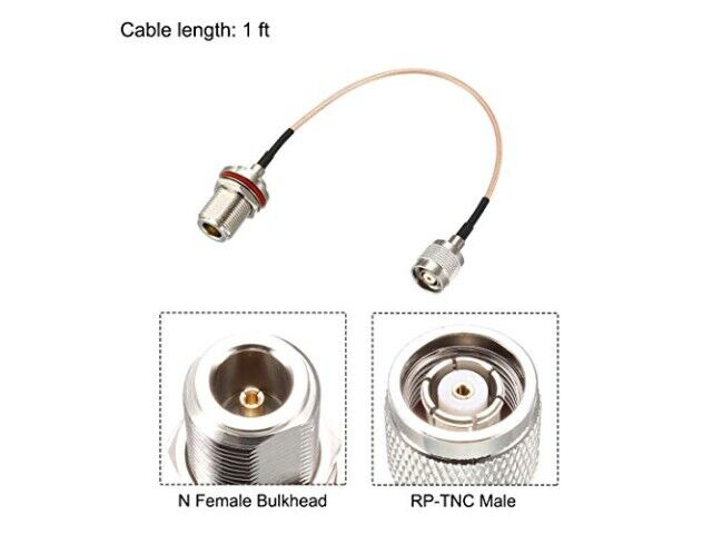 Specifikationer: 1-fot längd, RG316 koaxial, 50 OHM, RP-TNC Manlig till N-Typ Kvinnlig Bulkhead
