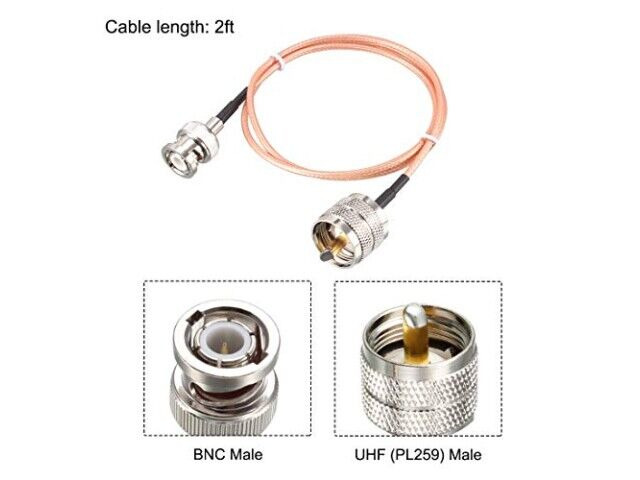 uxcell UHF Male till BNC Male Antennradiokabel RG316 Coax Kabel 2 Ft är en specialiserad koaxialkabel utformad för att ansluta UHF och BNC antennportar. Den används vanligtvis i radiofrekvensapplikationer, till exempel för att koppla basmobila antennen till handhållna enheter. Kablen är lämplig för användning i RF-system, routrar, signalförstärkare och annan kommunikationsutrustning som kräver pålitlig signalöverföring.