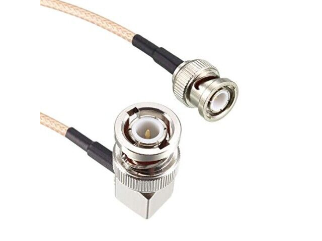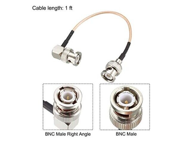 Specifikationer: 1 Feet length, 50 OHM impedance, BNC Male to BNC Male Right Angle, PTFE jacket, nickel plated connector body, gold plated contacts
