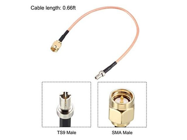 Specifikationer: 50 OHM, 0.66 ft längd, SMA Hannen till TS9 Hannen, RG316 koaxial kabel