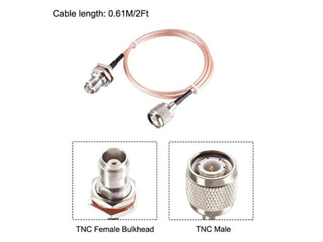 Specifikationer: Kabelsort: RG316; Kabellängd: 2 fot / 60 cm; Anslutning 1: TNC Bulkhead Female; Anslutning 2: TNC Male; Impedans: 50 ohm