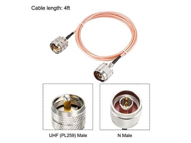 Specifikationer: 4 ft längd, 50 OHM impedans, RG316 koaxialkabel, UHF PL259 manlig till N-manlig kopplingar