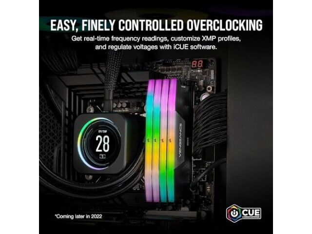 Der Speicher verfügt über dynamische RGB-Beleuchtung mit zehn Zonen, die eine umfassende Anpassung des Äußeren des Systems ermöglicht. Jedes Modul verfügt über eine Panorama-Lichtleiste mit einzeln ansprechbaren LEDs, die lebendige und immersive Beleuchtung aus jedem Winkel bieten. Benutzer können aus einer Vielzahl von voreingestellten Beleuchtungsprofilen wählen oder ihre eigenen mit der iCUE-Software erstellen. Diese Funktion erhöht den visuellen Reiz des PCs und bietet gleichzeitig Flexibilität bei der Personalisierung.