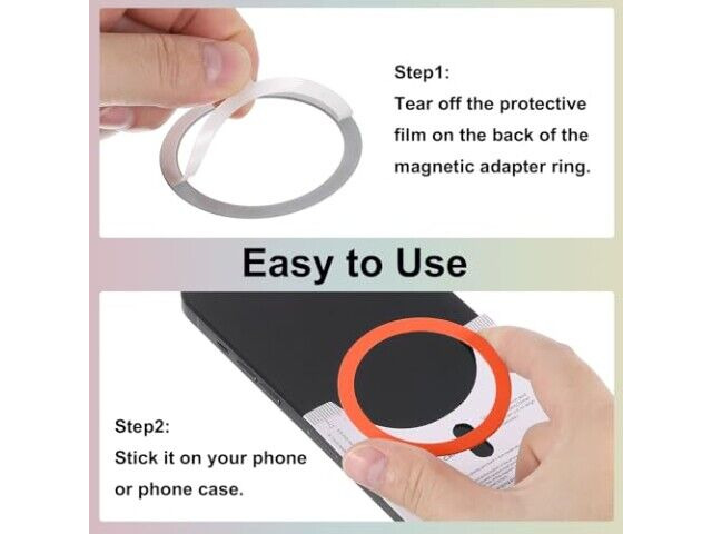 Pierścień adaptera magnetycznego wykonany jest z połączenia silikonu i blachy żelaznej, zapewniając trwałość i odporność na rdzę. Osłona silikonowa zapewnia miękkie trzymanie na obudowie telefonu, zapobiegając zarysowaniom, jednocześnie utrzymując silne połączenie magnetyczne. Projekt jest ultrakratki i lekki, więc nie dodaje znacznej wagi ani nie przeszkadza w funkcjach ładowania bezprzewodowego telefonu. Materiał zapewnia również, że pierścień pozostaje stabilny i nie przesuwa się podczas użytkowania.
