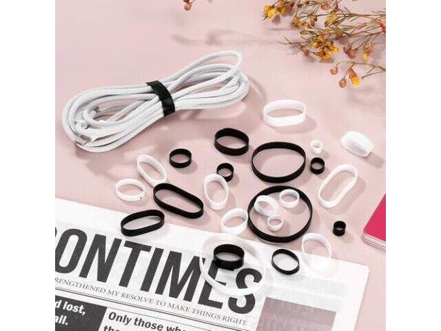 Są to silne, elastyczne czarne opaski gumowe zaprojektowane do różnych zadań mocowania i gromadzenia. Każda opaska ma 6 mm szerokości, 17,5 mm średnicy i 0,6 mm grubości, co czyni je małymi i lekkimi. Wykonane są z silikonu, co zapewnia trwałość i odporność na zużycie. Opaski są idealne do wielokrotnego użytku bez utraty elastyczności, co czyni je niezawodnym wyborem dla codziennych potrzeb.