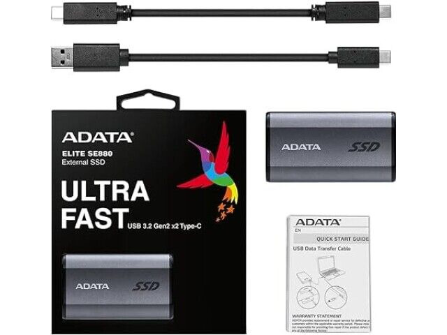 ADATA SE880 to dysk twardy SSD zewnętrzny o wysokiej wydajności, zaprojektowany dla użytkowników, którzy potrzebują szybkiego transferu danych i przenośności. Posiada wykończenie tytanowe i kompaktowe wymiary, co ułatwia jego przenoszenie, zapewniając jednocześnie trwałą konstrukcję. Dysku jest idealny dla profesjonalistów, graczy i studentów, którzy potrzebują szybkiego dostępu do dużych plików, takich jak filmy w wysokiej rozdzielczości lub instalacje gier. Jego złącze USB-C zapewnia kompatybilność z najnowszymi urządzeniami, w tym nowoczesnymi laptopami i konsolami do gier.