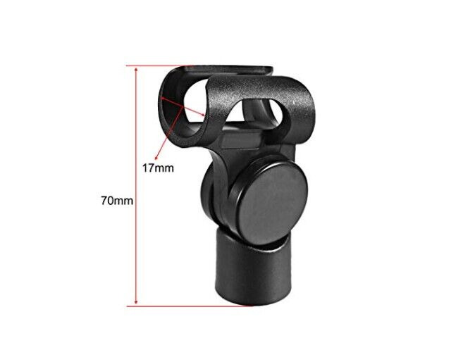 HÅllaren är byggd för att rymma både raka och koniska mikrofoner, vilket gör den lämplig för ett brett utbud av mikrofonmodeller. Dess maximala diameter på 17mm säkerställer att den kan passa säkert runt de flesta mikrofonkroppar utan att glida eller svaja. Förpackningen innehåller två klipphållare, vilket gör att användare kan ha reservdelar eller använda dem på flera stativ samtidigt. De material som används är starka men ändå mjuka nog för att förhindra skador på mikrofonen under installation eller avlägsnande.