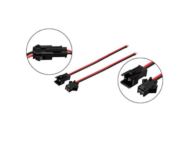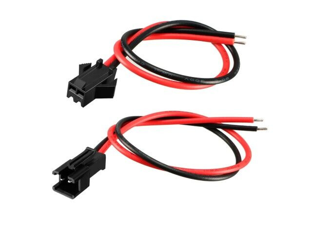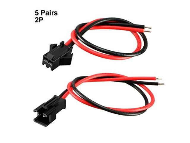 Specyfikacje: Connector type: SM 2 pin plug male and female; Pitch: 2.54mm; Cable wire length: male 10cm / female 10cm; Total length: 20cm; Plug connector color: black; Cable wire color: red and black; Plug connector material: plastic and copper wire; Quantity: 5 pairs