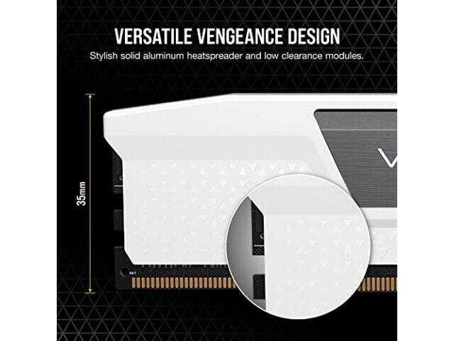 Das kompakte Formfaktor des VENGEANCE DDR5 gewährleistet die Kompatibilität mit einer Vielzahl von Mainboards und CPU-Kühlern. Das niedrige Design ist für Builds mit engen Platzverhältnissen geeignet. Darüber hinaus trägt der solide Aluminium-Heatspreader nicht nur zur Wärmeableitung bei, sondern verleiht dem Speichermodul auch ein markantes Aussehen. Diese Designentscheidung trägt sowohl zur thermischen Effizienz als auch zur Langlebigkeit bei.