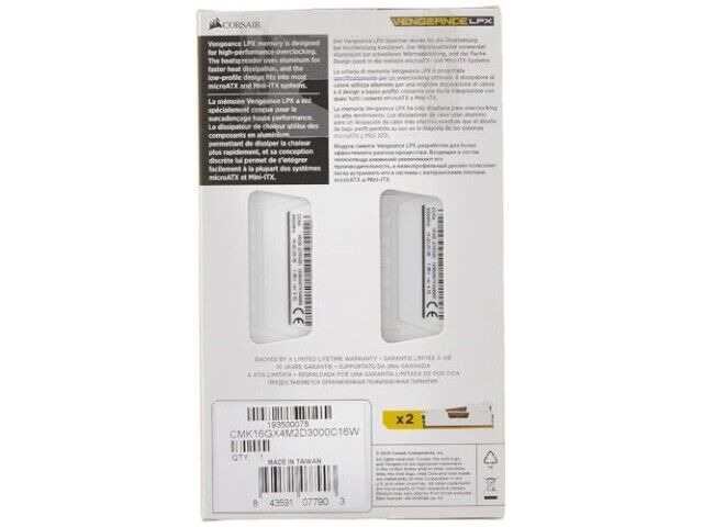 Med en låg profil på 34mm är Vengeance LPX kompatibel med de flesta småskaliga system och moderna moderkort. Aluminiumkylflänsen hjälper till att dissipera värme effektivt, vilket säkerställer konstant prestanda även under längre användning. Modulerna finns också i flera färger, vilket gör att användare kan matcha systemets estetik.