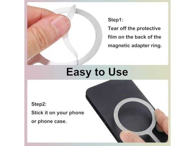 Ten zestaw do konwersji ładowania bezprzewodowego zawiera pięć magnesowych pierścieni naklejek zaprojektowanych do zwiększenia przyciągania magnetycznego między telefonem a akcesoriami magnetycznymi. Pierścienie wykonane są z trwałego metalu i są starannie polerowane, aby nie rysować powierzchni telefonu. Mają one na celu przymocowanie do telefonu lub etui, aby zapewnić bezpieczne połączenie z magnesowymi padami ładującymi lub uchwytami. Pierścienie są lekkie i cienkie, co ułatwia ich użycie bez zwiększania objętości telefonu.